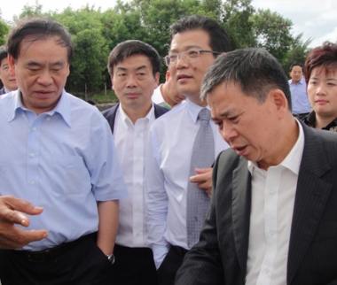 Lv zushan (Left 1), former Zhejiang province governor, were visiting Jiuli together with Zhou Zhijiang and other deputies in 2011.